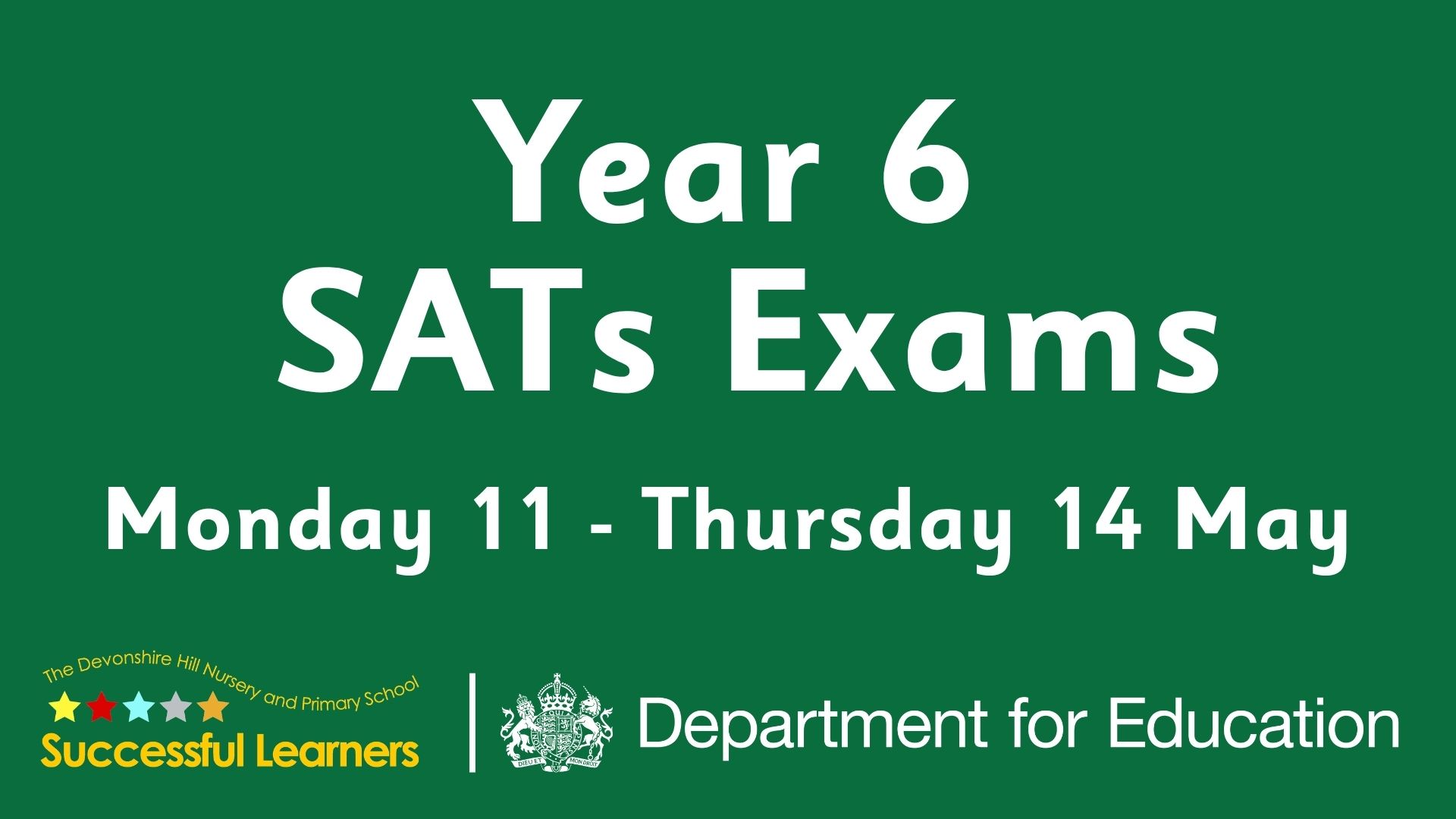 Year 6 SATs exams take place during the week commencing Monday 11th May (Monday to Thursday). All Year 6 children must arrive at school by 8am on all four of these days, a healthy breakfast will be provided. For full details of the SATs timetable, please see the recent letter: www.devonshirehill.com/letter/important-information-year-6-sats-2/